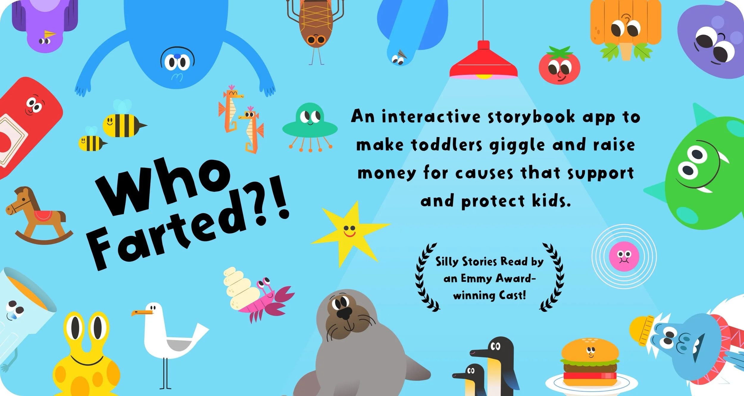 We wrote and designed these stories in-house, and implemented all the ambient sounds, buttons, and extras that keep kids curious and invite them to keep exploring. 100% of Who Farted?! profits are headed to charities that benefit kids.